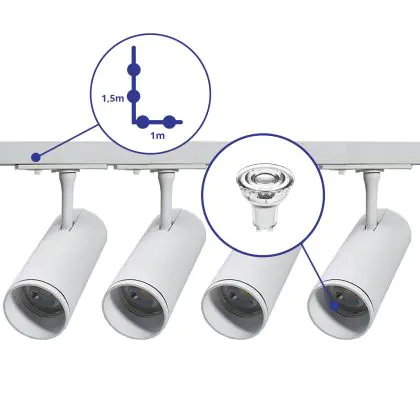 | Herstellername | Complete L shaped 1-Phase Track Set White incl. 4x Spot fixture + GU10 2700K 3W Dim - 1 x 1.5 meters | |