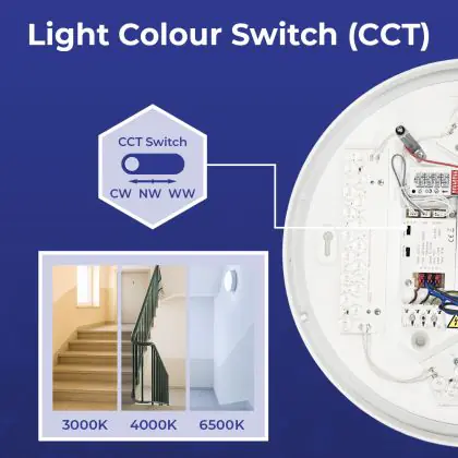 2. CCT: Sie wählen über einen Schalter aus 2 oder 3 festen Farben aus, z. B. Warmweiss oder Kaltweiss.