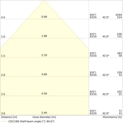 Der Abstrahlwinkel bezeichnet den Winkel, in dem das Licht aus der Lichtquelle ausgestrahlt wird. Er wird in Grad (D) angegeben. Je geringer die Gradzahl des Abstrahlwinkels ist, desto kleiner ist auch der Durchmesser des Lichtkegels, den die Lichtquelle produziert.