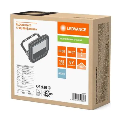 Ledvance Led-Scheinwerfer Aluminium Schwarz 17W 2400lm 100D - 865 | IP66 - Symmetrisch