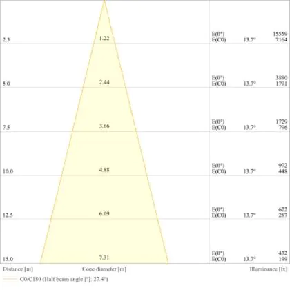 Der Abstrahlwinkel bezeichnet den Winkel, in dem das Licht aus der Lichtquelle ausgestrahlt wird. Er wird in Grad (D) angegeben. Je geringer die Gradzahl des Abstrahlwinkels ist, desto kleiner ist auch der Durchmesser des Lichtkegels, den die Lichtquelle produziert.