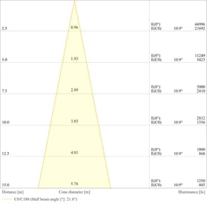 Der Abstrahlwinkel bezeichnet den Winkel, in dem das Licht aus der Lichtquelle ausgestrahlt wird. Er wird in Grad (D) angegeben. Je geringer die Gradzahl des Abstrahlwinkels ist, desto kleiner ist auch der Durchmesser des Lichtkegels, den die Lichtquelle produziert.