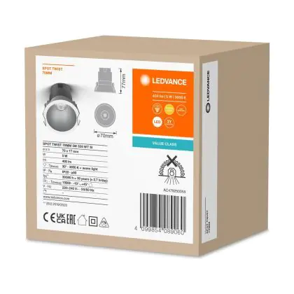 | Herstellername | LED SPOT RECESS TWIST PRO 70mm 5W 3000K White Silver | |