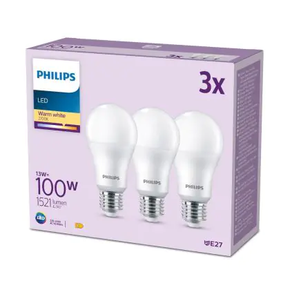 | Herstellername | Box 3 stuks - Philips LED Lamp Mat - 100 W - E27 - Warmwit licht | |