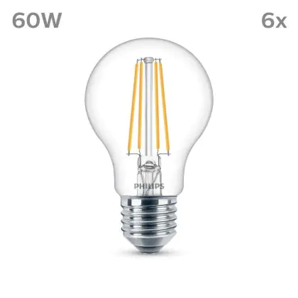 Mehrfachpackung 6x Philips Glühbirne LED E27 Birne Fadenlampe Klar 7W 850lm - 840