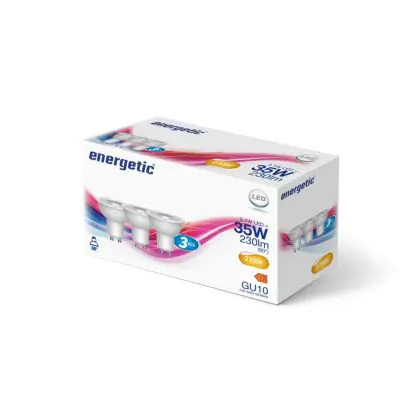 Bulk 105x Energetic LED Spot GU10 PAR16 3.1W 230lm 36D - 827 Blanc Très Chaud | Équivalent 35W