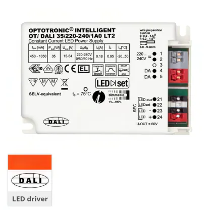 | Connexion du Luminaire | Terminal, 2-pole (MAINS) | 2-pole (DIM) | |