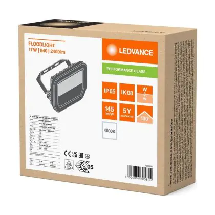 Le Ledvance Projecteur LED Aluminium Noir 17W 2400lm 100D - 840 | IP66 - Symétrique permet une économie d’énergie importante tout en conservant une excellente qualité d’éclairage. Sa technologie LED Intégré lui permet également d’avoir une très longue durée de vie pouvant aller jusqu’à 100000 heures. Ce projecteur LED est étanche, avec son indice de protection IP66 lui permettant d’être hermétique à la poussière et à l’eau. Disponible dans la couleur 4000K - Blanc Froid et un flux lumineux de 2400 Lm, ce projecteur LED est la solution idéale pour le remplacement de vos anciens projecteurs conventionnels.