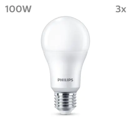 Description Lot 3x Philips Ampoule LED E27 Poire Dépolie 13W 1521lm - 840